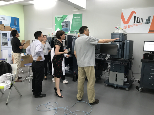 在谭文院长的带领下, Backx 院士及Gibson院长参观了猫都论坛 实验室,两方均对研究院在科研平台建设、国际科研合作等方面的工作给予了高度评价,并针对影像成像质谱、离子淌度质谱和四级杆飞行时间质谱等高性能质谱组学分析仪器的应用开展科研课题探讨。