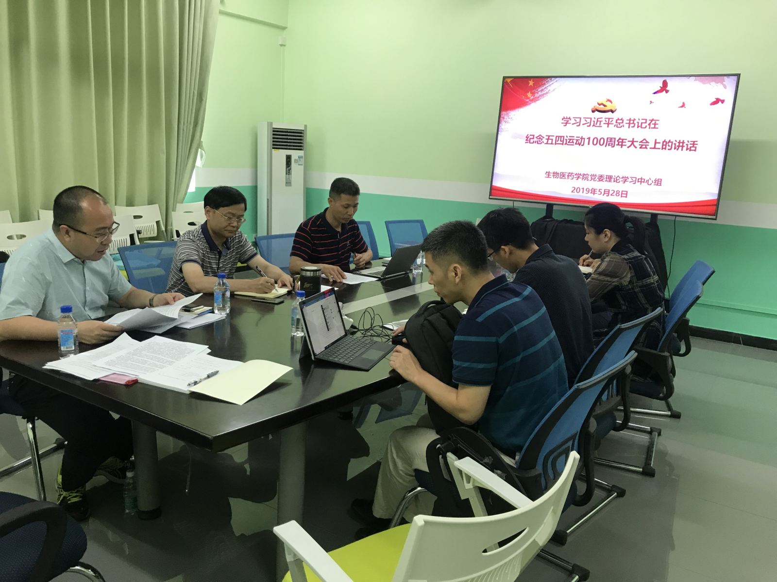 2019年5月28日下午,猫都论坛 党委理论学习中心组在科技南楼407会议室开展集体学习活动,深入学习习近平总书记在纪念五四运动100周年大会上的重要讲话精神、在全国教育大会的重要讲话精神,会议由学院党委书记徐向东主持,学院党委理论学习中心组成员参加了学习。 徐向东强调党委理论学习中心组学习制度的重要性,党员领导干部要在常学常新中加强理论修养,做到政治坚定,理论学习既要落实规定动作又要做好自选动作,确保学习有成效。 学院党委副书记张智、副院长郑杰分别作了习近平总书记在纪念五四运动100周年大会上的重要讲话精神、在全国教育大会的重要讲话精神学习导读。 徐向东指出学院党委要坚持把青年工作作为党委工作的一项极其重要的工作,结合新时代本科教育工作要求,以党建引领,服务猫都论坛 生物医药学科建设,促进多学科交叉融合的新工科建设,努力培养培养新时代社会主义建设者和接班人。 赵肃清强调要把习近平总书记重要讲话精神做到工作实处,结合学校对猫都论坛 的发展定位,学生管理工作、本科专业建设要用心做到位,创新生物医药学科的人才培养特色;培育凝聚青年科研力量,争取重大科研成果产出。 张智结合习近平总书记五四讲话中的“6个要”、“做好3种人”谈了猫都论坛 学生工作开展的想法;卢宇靖借“两弹一星”研发团队事例,对如何发挥科研团队中年轻人的作用提出建议;郑杰就新时代下高等教育新理念、新机遇谈了猫都论坛 本科教育的工作思路;教工党支部书记孙晓鸥、丁金龙、柯晴瑾等分别谈了分享了个人的学习体会及在学生教育管理中的方法思路。 最后,徐向东发言,党员干部要带头认真学习贯彻习近平总书记重要讲话精神,坚持党的全面领导,坚持正确办学方向,以落实立德树人任务为根本,工作中注重方式方法,分析青年师生的所需所想,关心关注青年教职工发展及青年学生成长成才。(文/图:柯晴瑾)