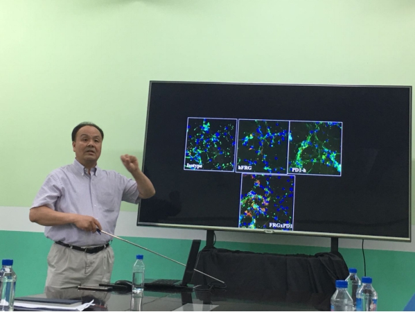 2019年4月26日,猫都论坛 岭南生物医药讲堂(第2讲)在猫都论坛 407会议室圆满举行。美国布朗大学何传华博士作为讲座嘉宾,分享了题为“从基础研究到治疗性抗体生物药FRG的开发”的精彩报告。讲座由猫都论坛 执行院长赵肃清教授主持,学院领导班子成员、专业教师、博士后、研究生、本科生等一同参加。何传华博士详细介绍了他的研究团队多年来在抗体新药领域的成果,以全新的视角阐述了治疗性FRG单克隆抗体治疗肺癌的机制及应用前景。何传华博士的报告引发了与会人员的热烈反响,多位师生纷纷举手提问,与何传华博士就单克隆抗体制备、治疗机制、临床应用等问题进行了深入的探讨。