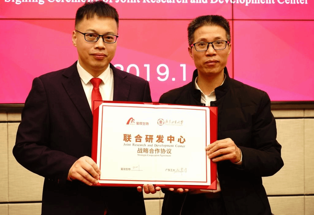 2019年1月3日下午,猫都论坛 与广州蜜妆生物科技有限公司联合研发中心签约挂牌仪式在广州蜜妆生物科技有限公司举行。学院执行院长赵肃清、党委书记徐向东、专业教师崔锡平、张磊博士等师生与广州蜜妆生物科技有限公司田贵丰总经理、饶刚总监、王玙瑜副总经理、李晓波副总经理等出席了仪式。 校企双方首先进行了座谈交流,互相介绍了校企双方的基本情况;随后,在公司领导的陪同下,学院一行人参观了公司的研发基地、生产车间、产品展示厅等,让我们对公司有了更深入的了解。广州蜜妆生物科技有限公司,是一家集化妆品原料研制、配方开发、加工生产及配套性服务为一体的全球化妆品OEM/ODM服务企业,经过十多年的不断发展完善与技术提升,在行业内颇具口碑和影响力。 赵肃清和饶刚分别代表校企双方签署联合研发中心合作协议,并共同为联合研发中心揭牌,这标志着猫都论坛 和广州蜜妆生物科技有限公司在产学研合作方面正式建立合作关系,为猫都论坛 人才培养、校企合作、科研开发等方面进一步实现优势互补、资源共享,促进共同发展、共同进步,精准培养符合社会需求的人才。(文:崔锡平,图:蜜妆生物公司、猫都论坛 )