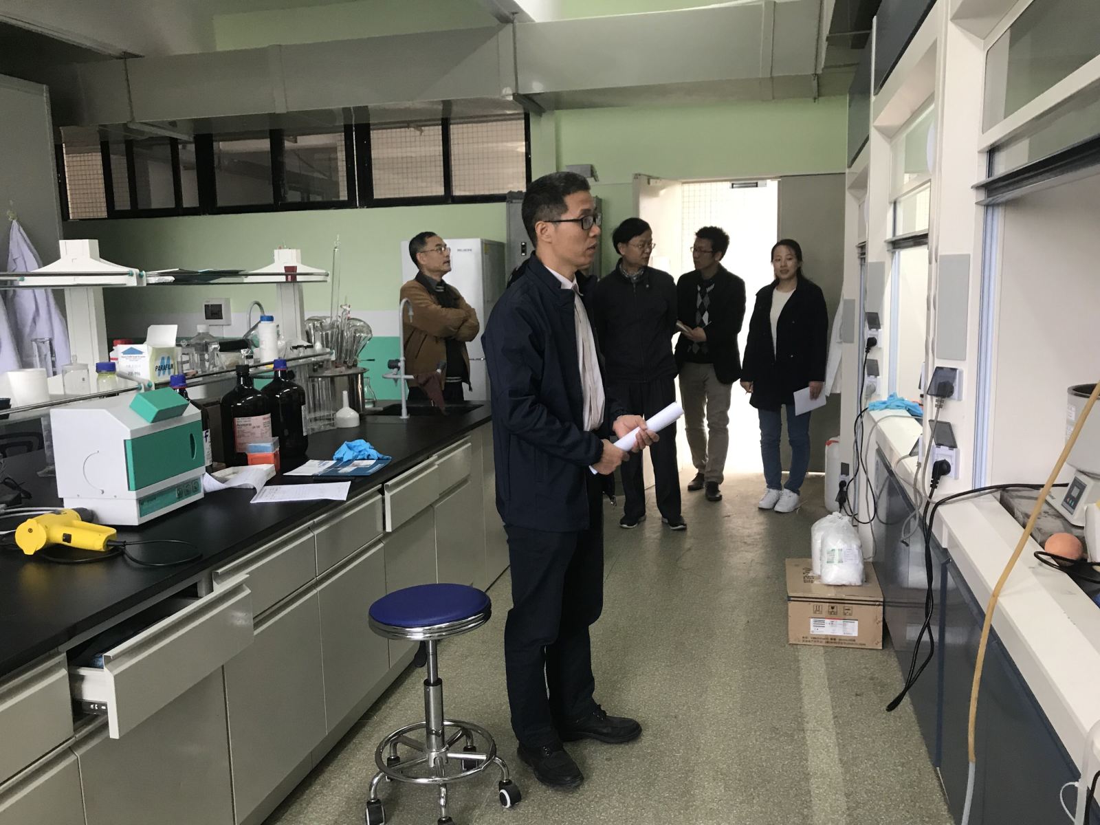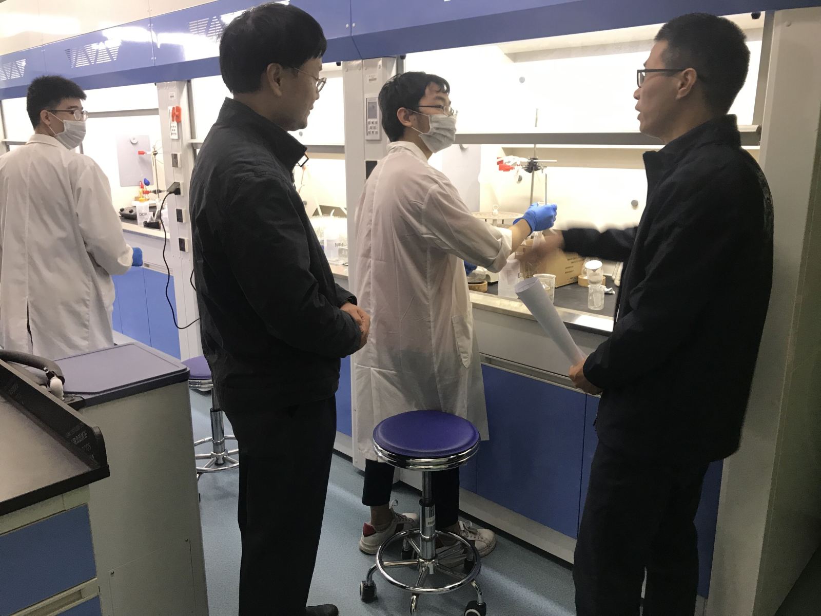 按照学校《关于加强元旦和寒假期间实验室安全管理工作的通知》要求,2018年12月28日上午,猫都论坛 组织开展实验室安全检查工作,党委书记徐向东、执行院长赵肃清、卢宇靖教授、实验员参加了检查活动。检查范围涉及猫都论坛 的化学及生物实验室,重点检查卫生环境、危化品的管理、管控类药品的管理、气体的使用以及化学废弃物的处置等情况。检查中,学院领导亦就废弃物的处置、气瓶的固定、个人有效防护等细节与实验人员做了全方位的指导和交流,要求实验人员认真做实验防护,确保人员及实验室安全,促进科研工作的有序开展。(图/文:柯晴瑾)