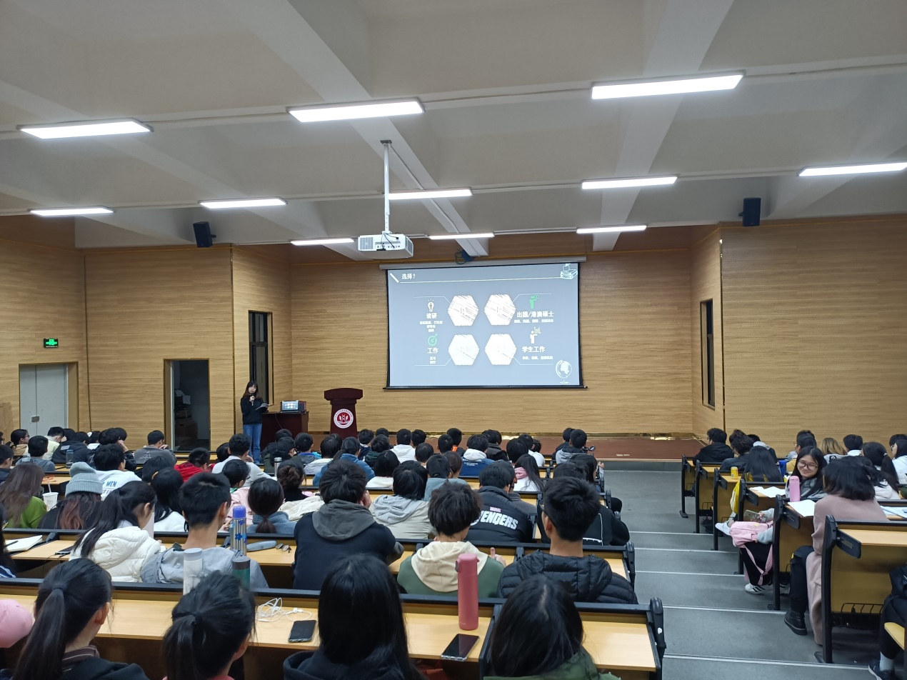 12月19日下午,猫都论坛 在科技南楼学术报告厅召开了2019级本科生年级大会。本次大会邀请了2017级保研学生代表黎芷茵、苏静怡,2019级本科生全体同学和辅导员万敏出席。