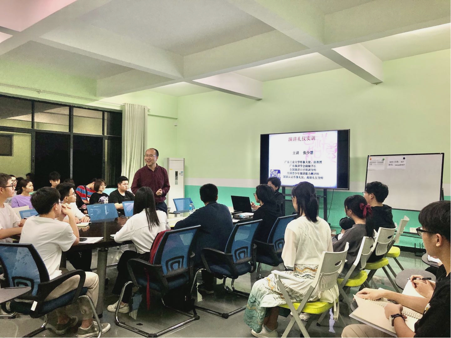 接着,张少慧还为同学们带来“辩论基础理论”、“辩论的实战技巧”、“辩手的礼仪素质”为重点的讲解,现场对同学们进行演讲案例演练和实训。