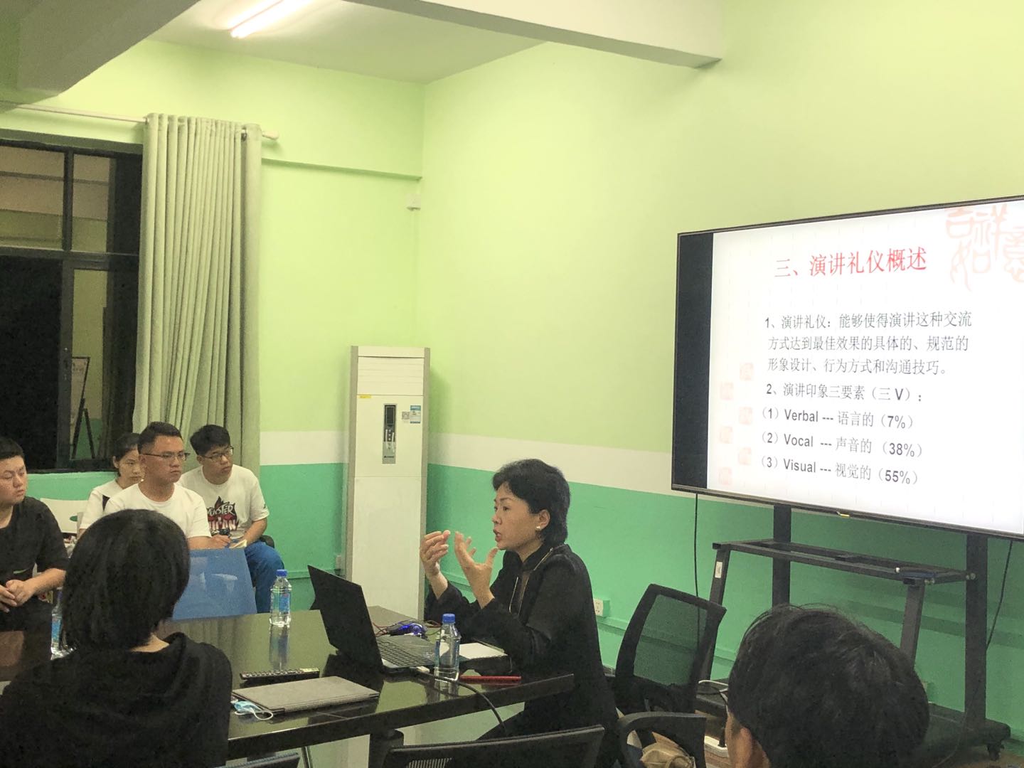 张少慧以学好语言艺术,讲好中国故事,做青年大学生形象的“发声者”为话题为同学们树立演讲自信。她通过对演讲、礼仪的解读为同学们普及两项知识,以演讲实训为重点从语音、语调、语速、语感、神态、姿势、动作、感情等方面讲授实演讲训知识。