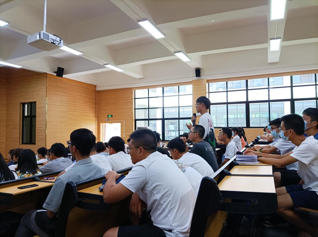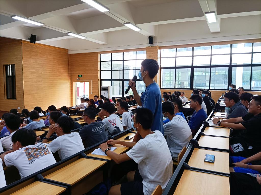 其次,吴诗淇、陈泽鑫、蔡东鹏、杨嘉伟结合自己的大学生活、科创经历、职业规划,以其独到的见解拨开了新生对大学生活和未来就业的迷雾。在随后的互动环节,新生们踊跃提出自己对大学生活的困惑,师兄师姐积极为新生解决疑问,现场气氛活跃,台上台下互动热烈,充分展现了猫都论坛 师生积极乐观、奋发向上的精神风采。