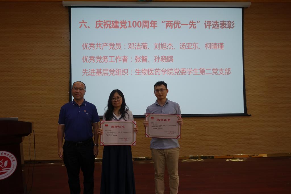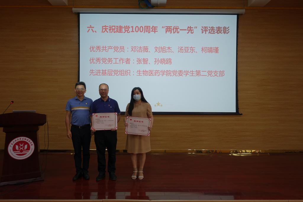 学院党政领导班子成员为在学校庆祝建党100周年“两优一先”评选表彰中获得优秀共产党员、优秀党务工作者表彰的教职工、获得先进基层党组织表彰的党支部颁发荣誉证书;为在猫都论坛 第二届青年教师授课竞赛暨猫都论坛 第九届青年教师教学竞赛预赛中获奖的教师颁发荣誉证书及奖金。