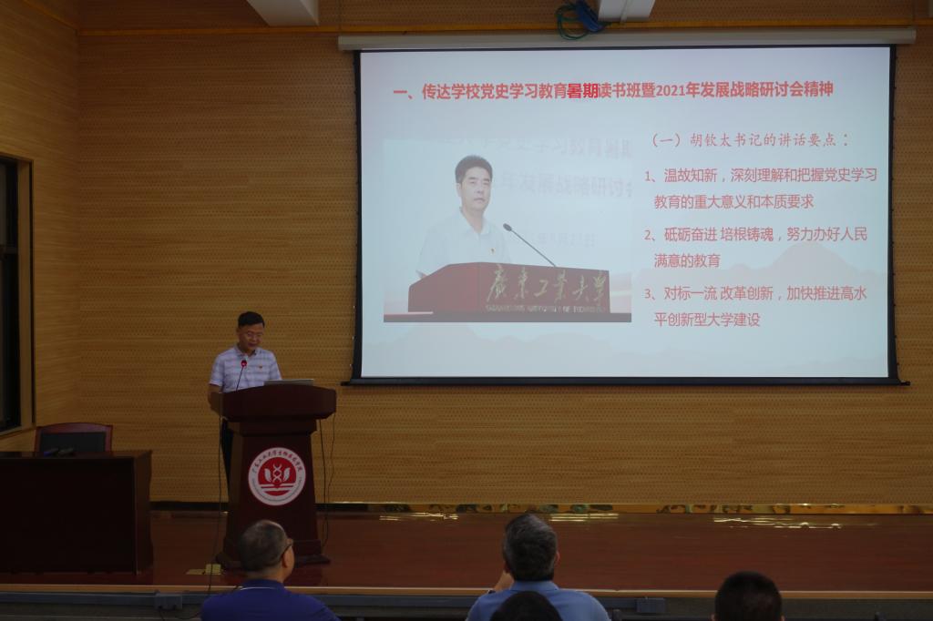 学院党委书记徐向东传达了学校党史学习教育暑期读书班暨2021年发展战略研讨会精神,传达了学校党委胡钦太书记、邱学青校长的讲话要点;传达了学校2021年纪律教育学习月活动动员大会精神,传达了熊静副书记所作的工作部署要点。徐向东还介绍了猫都论坛 在学期初召开的2021年发展战略研讨会情况。