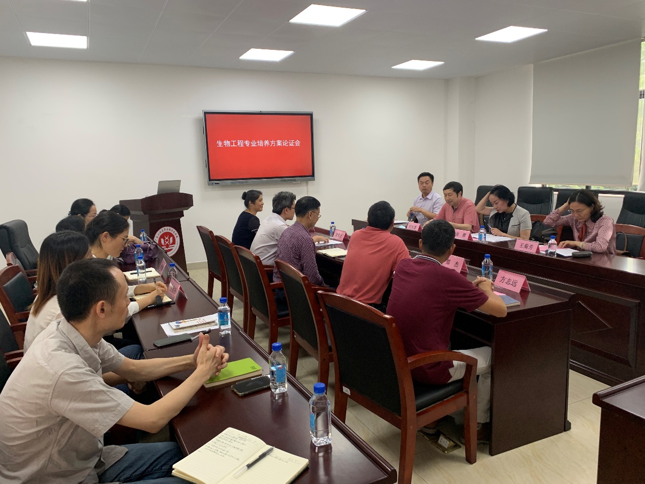 会议由郑杰主持,徐向东首先代表学院对到会专家的莅临表示了欢迎和感谢,并简要介绍了生物工程专业的基本情况及培养方案修订的指导思想。随后傅明辉从生物工程专业人才培养方案修订依据、修订说明、进行情况等方面进行了汇报。专家组认真听取了汇报,审阅了培养方案,就培养目标、专业特色、课程体系和毕业要求等培养方案的核心内容与参会人员进行了充分的交流和讨论。专家们提出在“新工科”时代背景下,要重视工程实践环节的教育,切实提高学生分析解决实际问题的能力;专家们还指出课程体系中的必修课程设置要能够充分支撑毕业要求各指标点;专业选修课程设置要考虑对学生进行个性化的培养和方向性的指导,突出专业的区域特色。