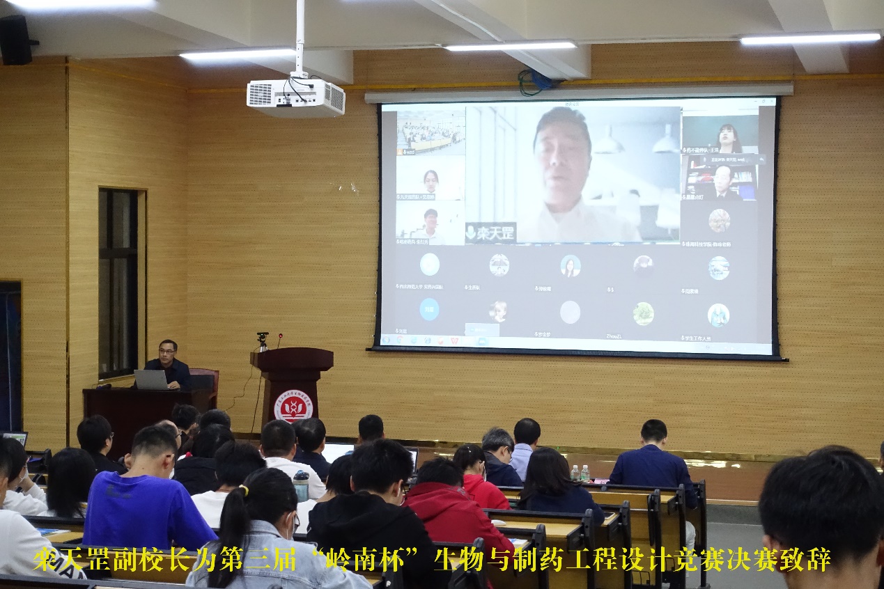 2021年12月11日下午,猫都论坛 第三届“岭南杯”生物制药工程设计竞赛决赛以线上线下结合的形式,在大学城校区猫都论坛 科技南楼学术报告厅和腾讯会议平台成功举行。