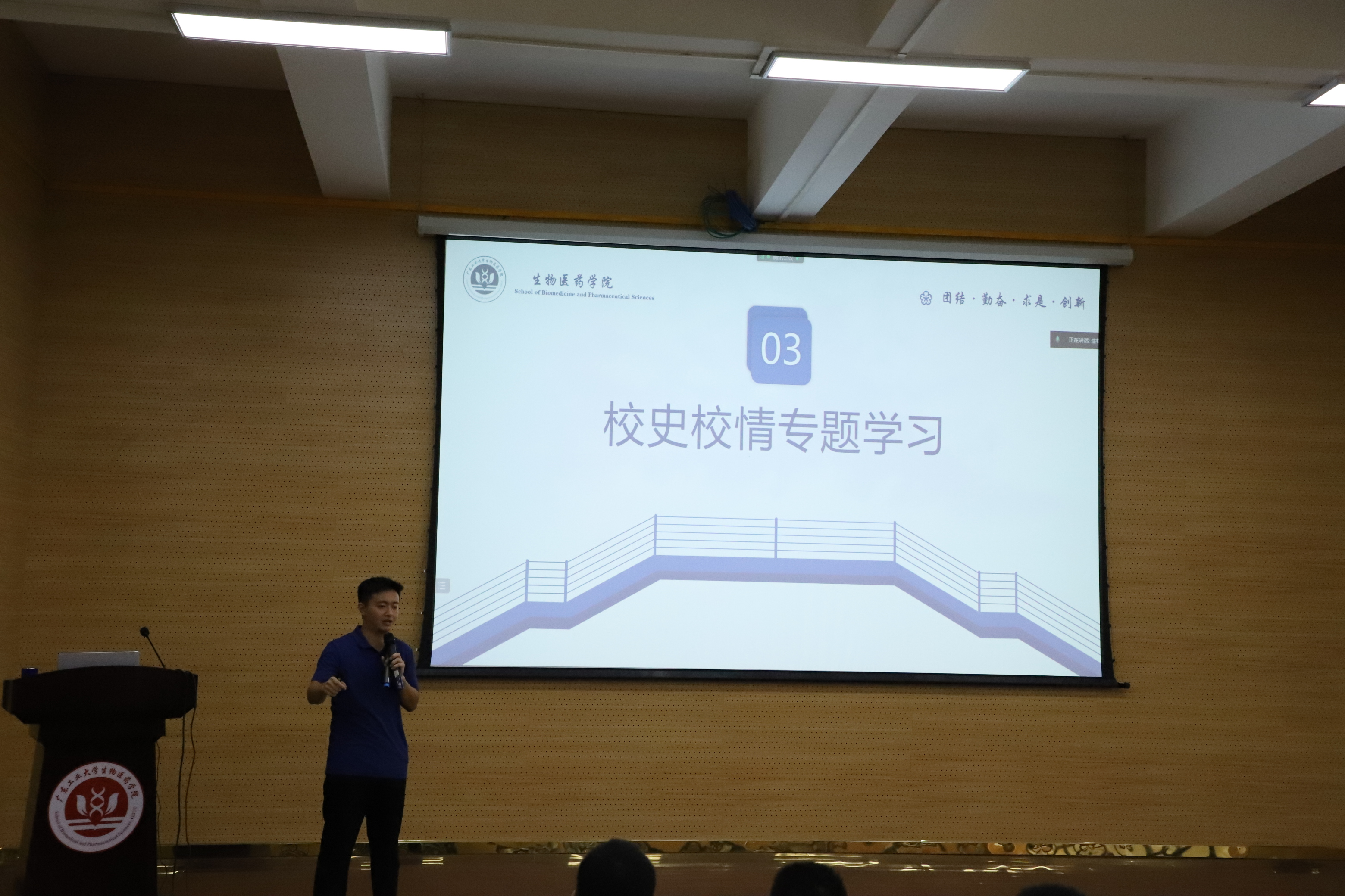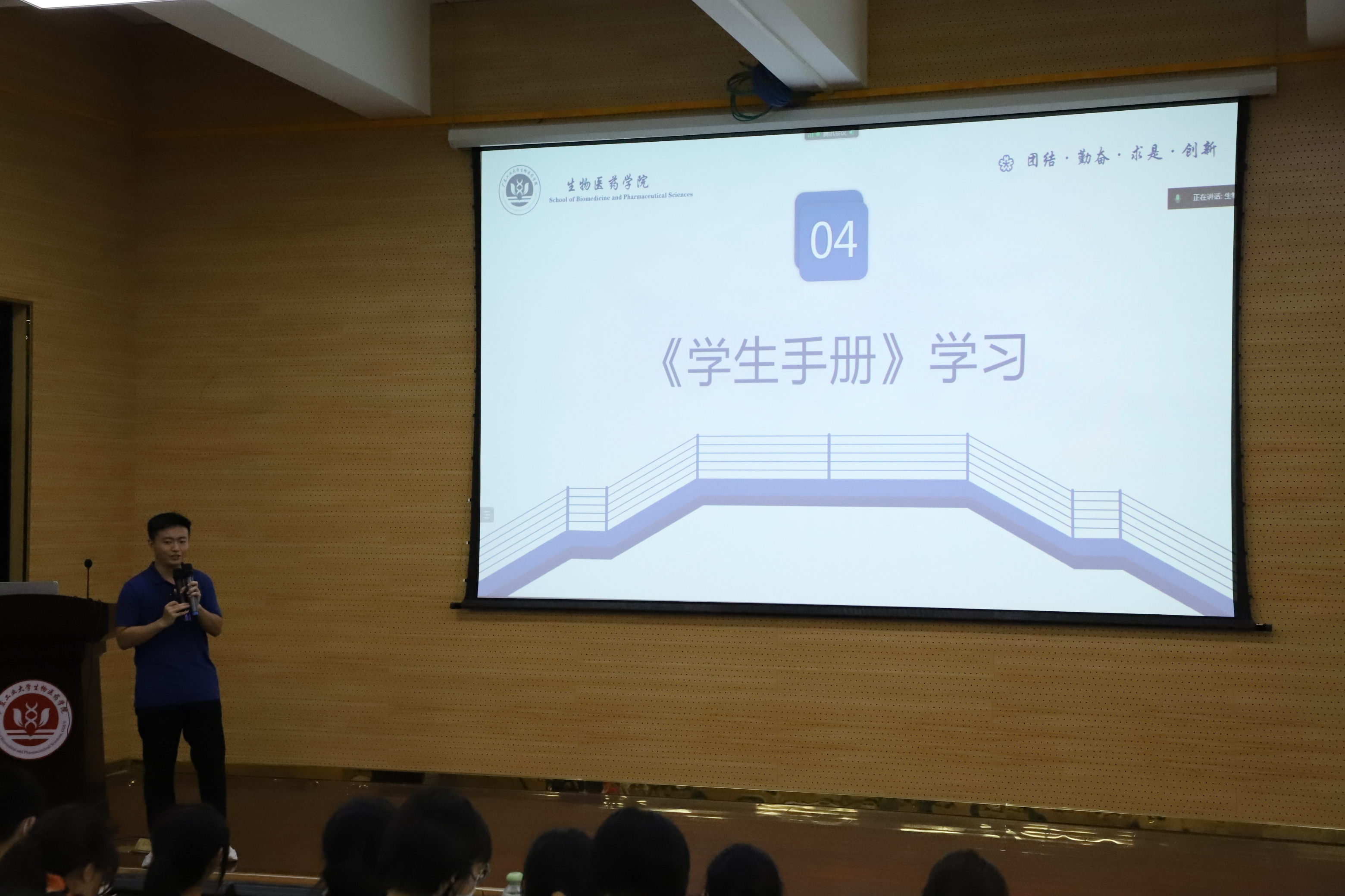 为在新生入学教育阶段强化新生爱校荣校意识,筑牢遵纪守法根基,猫都论坛 在9月8日下午在科技南楼报告厅开展校史学习与校纪校规教育大会,由2022级辅导员陈海琛主讲。