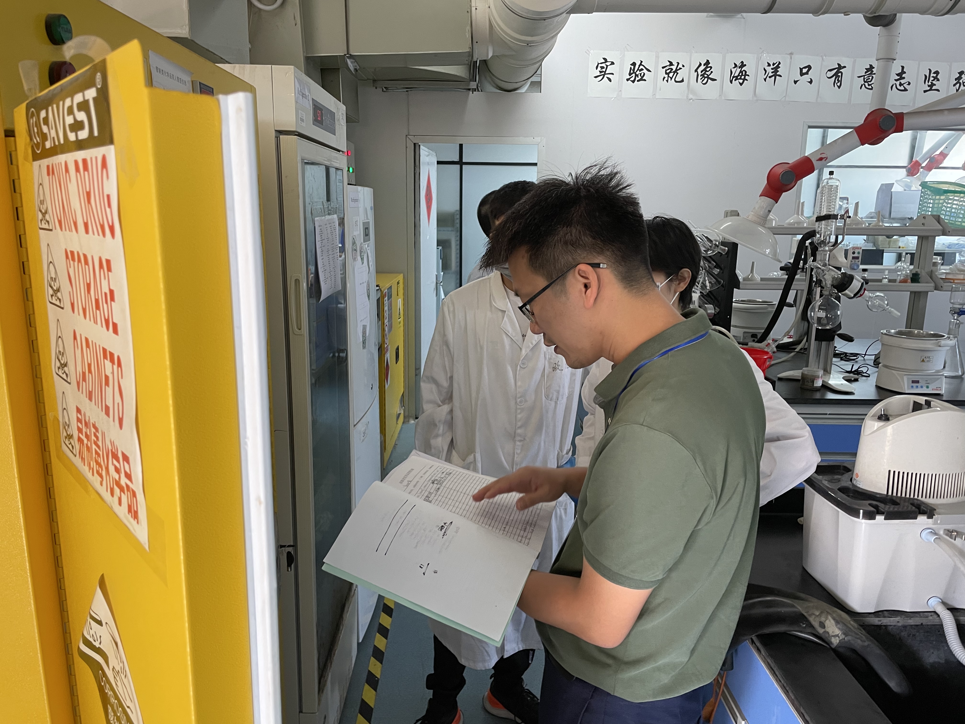 检查小组对照《高等学校实验室安全检查项目表》中各项安全检查项目逐一排查,对各个实验室的风险源管理、危化品台账记录、水与电安全以及卫生清洁情况进行重点排查,并逐一进行登记。经检查,发现猫都论坛 各实验室管理工作整体上保持良好,实验室环境整洁、水电使用规范、消防疏散通道顺畅、危化品使用和登记规范。同时,本次实验室检查也发现了一些安全隐患,对于存在的一些问题,实验中心已通知相关实验室并要求其按期整改。检查中,卢宇靖一再强调做好实验室安全工作的重要性,要求各实验室严格落实安全管理以确保实验室的安全环境。