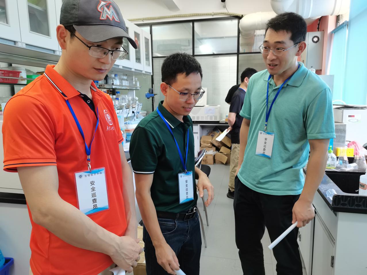 端午节假期即将来临,为确保猫都论坛 实验室安全稳定运行,2023年6月20日下午,院长助理兼实验中心主任黎相广,生物医学工程系刘旭杰、昝洁,生物工程系蒋银,生物医药研究院赵正刚,实验中心黄明星、程书朋7位老师组成检查小组对猫都论坛 实验室开展全面的安全检查。