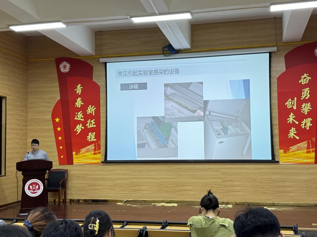 实验中心主任陈修财副教授进行了《加强生物安全建设,提高风险应对能力》的主题讲座。在讲座中,陈主任详细解读了《病原微生物实验室生物安全管理条例》,特别关注了病原微生物的分类及其潜在危害。此外,他还对猫都论坛 实验室的生物安全防护现状进行了分析,并提出了相关改进措施,旨在提高师生应对生物安全风险的能力。