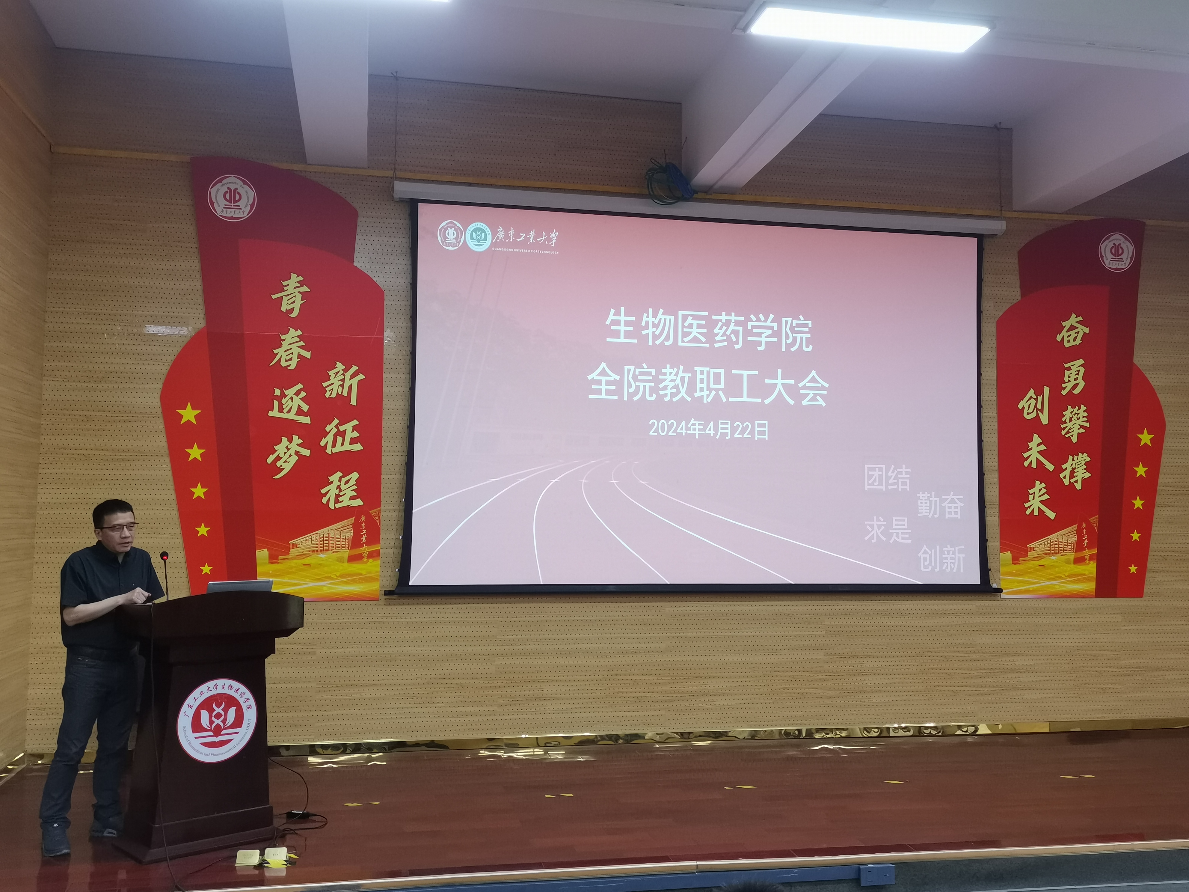 林章凛接着向全体教职工介绍了以制药工程与药学为特色的“生物工程”一级学科建设进展,以及学院青百人才考核、职称评审等教师人事若干规范运用情况。林章凛指出,学院接下来将力争在以下方面工作取得进展:一是继续开展青百人才的人事考核改革试点工作,着力探索人才“引育管退”机制。二是争取调整学院职称评审的教学工作量要求,与先进兄弟院校看齐。三是逐步理顺学院科研团队,按学科主线,重组实质性科研团队,帮助学院青百人才成长;要求新团队负责人以合同条款形式明确承诺支持青百人才;保障青百研究生招生指标。四是加强学院和有关部处联动,建立教师“师德师风”规范,为学院和学校的工作和发展提供一个安静的环境。