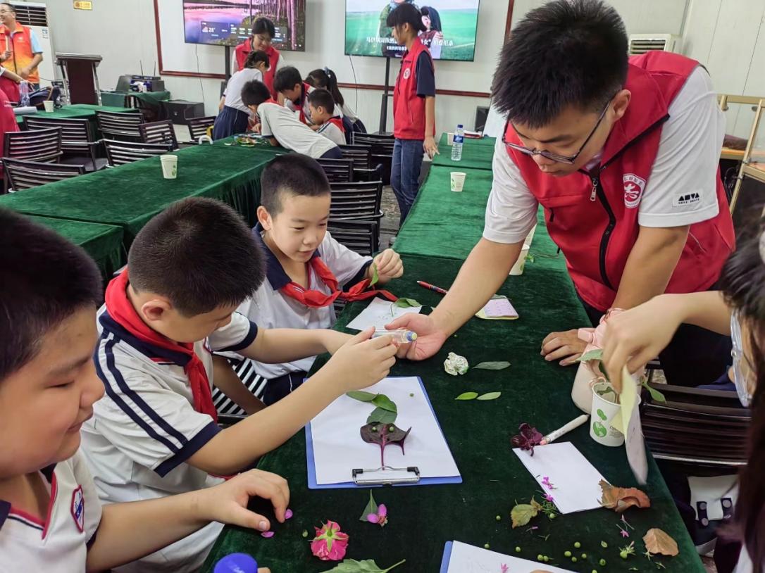 志愿者们还带着小学生们开展中草药押花画。同学们在百草园,精心挑选并采摘所需的中草药材料,成功完成了共计九幅精美的中草药押花画,并结合自己的作品分享了此次活动中的收获与感悟。