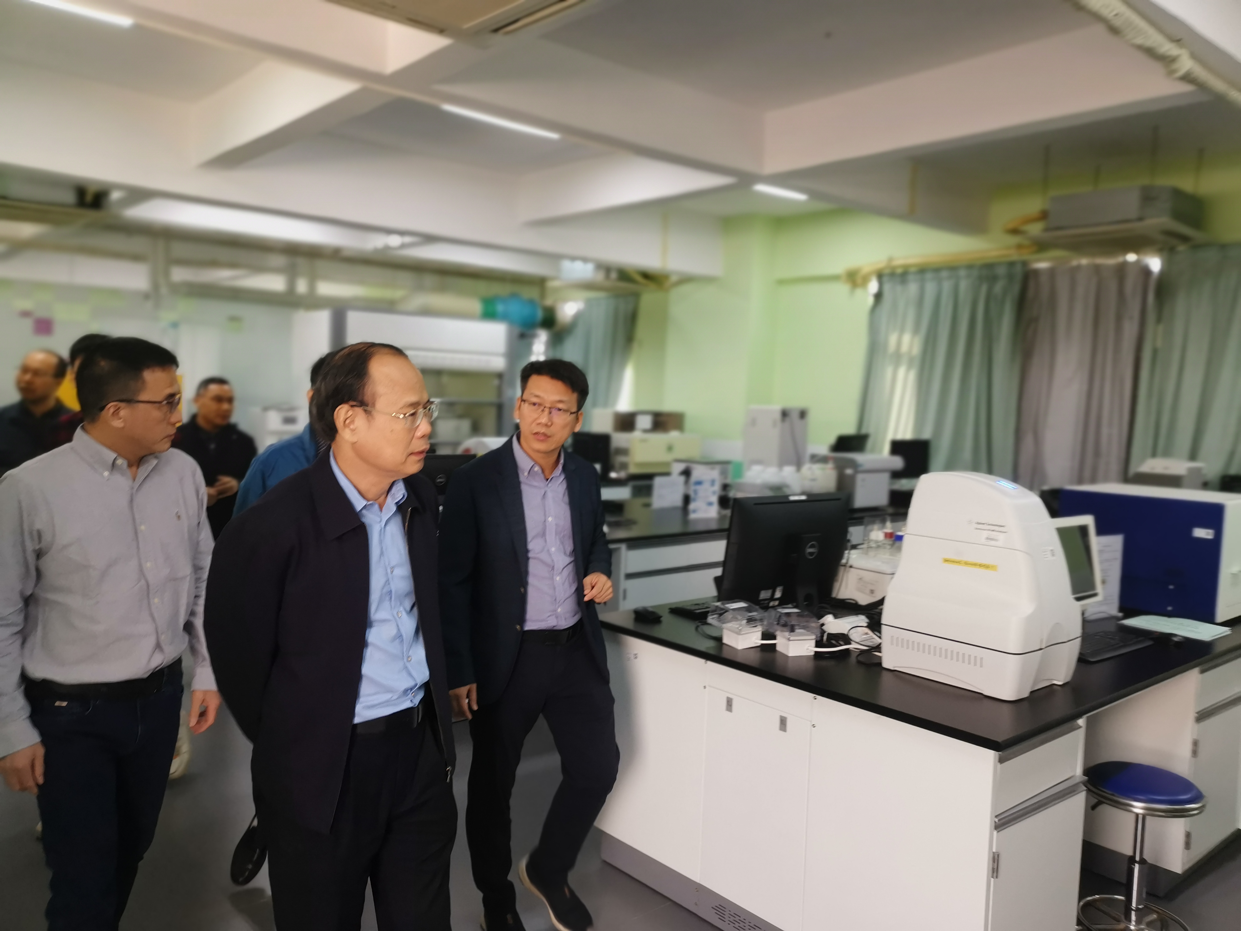 邱学青在学院班子成员的陪同下实地考察了学院实验中心、科研实验室、本科实验室和办公场地。