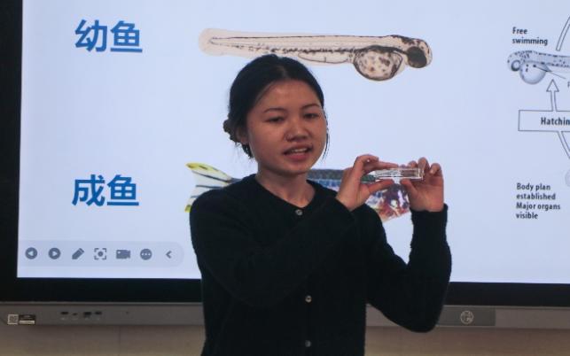 第二环节是观察斑马鱼发育。科普活动的队长深入浅出地讲解了斑马鱼的各个发育阶段,从胚胎到幼鱼再到成鱼的形态变化和生理特征,以及在生命科学研究中的应用。小学生们都全神贯注,眼中满是好奇与求知欲。之后,大家有序地观察相应阶段的斑马鱼活标本,直观地感受生命的神奇与奥秘,进一步激发他们对生物学的浓厚兴趣,在心中播下了科学研究的种子。