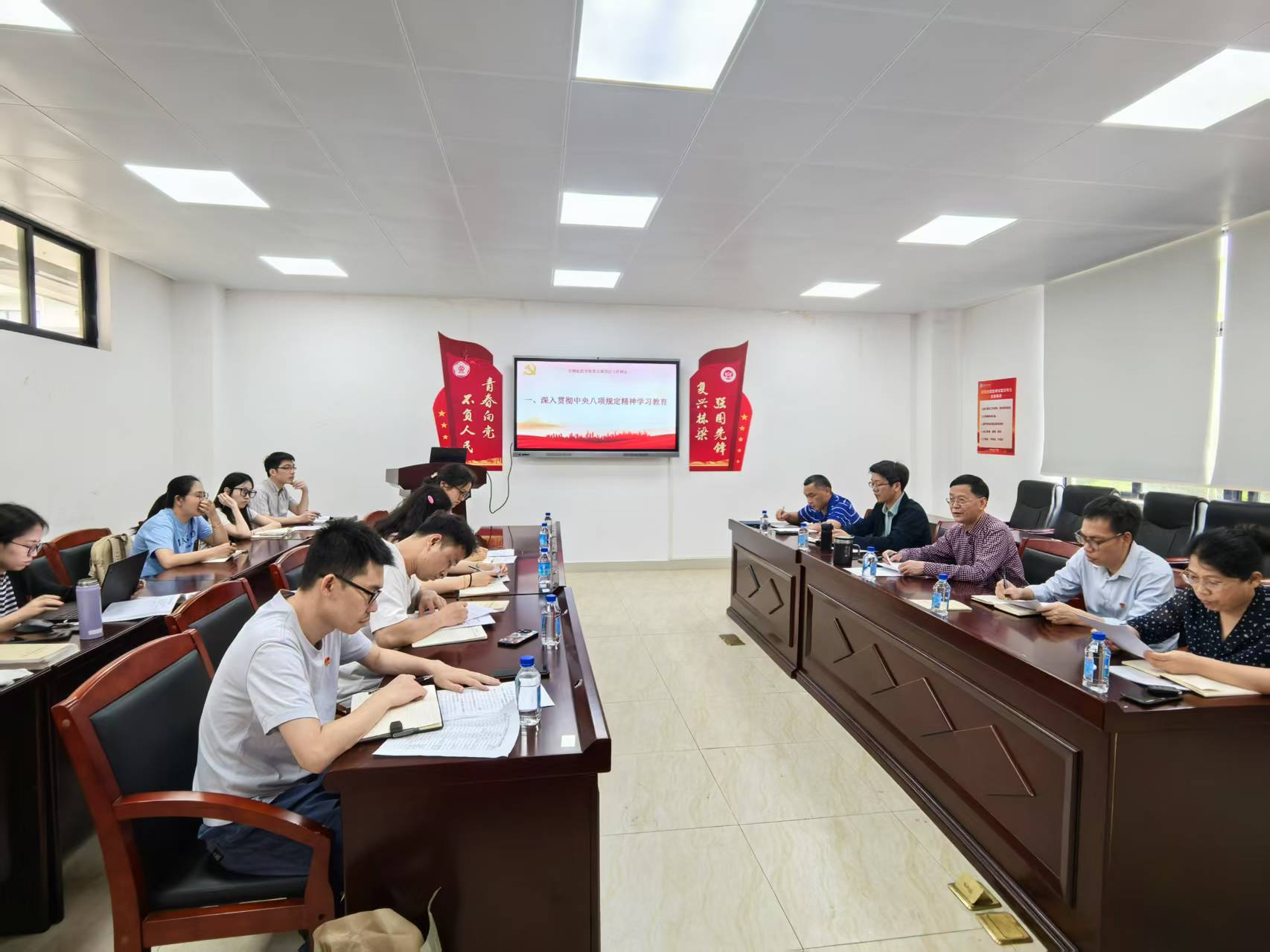 为深入贯彻中央八项规定精神,坚定不移推进党的作风建设,切实提升党建工作的质量和水平,猫都论坛 于3月27日下午在科技南楼203-4党建活动室,召开了深入贯彻中央八项规定精神学习教育启动部署会暨党支部书记工作例会,学院党委委员、各支部党支部书记、支部组织委员参加了会议。会议由学院党委书记徐向东主持。