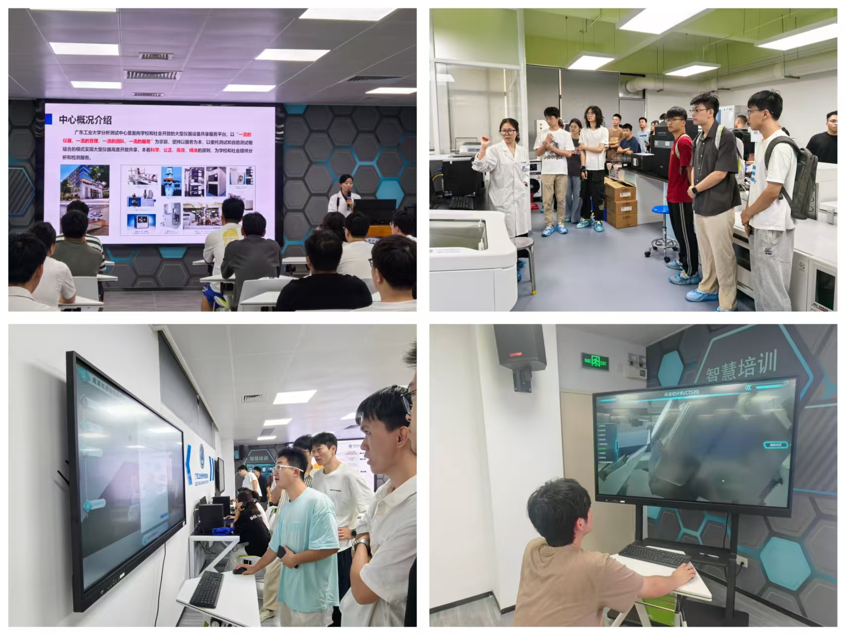 首先,陈雨婷老师给同学们系统介绍了中心的发展历程、核心研究方向与重要仪器配置。然后,陈雨婷从中心的学科支撑定位,到各类大型仪器在生物医药领域的应用案例,深入浅出地讲解,让同学们对科研设备与学术研究的关联性有了清晰认知,并鼓励同学们充分利用现有设备资源,为未来科研工作提质增效。在陈雨婷的引导下,同学们重点体验了大型仪器智慧学习虚拟仿真项目,借助现代信息技术,同学们 “沉浸式” 走进虚拟实验场景,“亲手操作” 价值数百万的大型分析仪器,在模拟操作中直观感受仪器运行原理,在虚拟实验中感受科技的魅力。随后,同学们有序进入实验室进行参观,中心综合前处理平台负责人丁先艳老师结合学院专业科研需求,详细讲解了相关设备的构造特点、工作原理及主要应用范围,帮助大家建立 “需求匹配设备” 的科研思维。