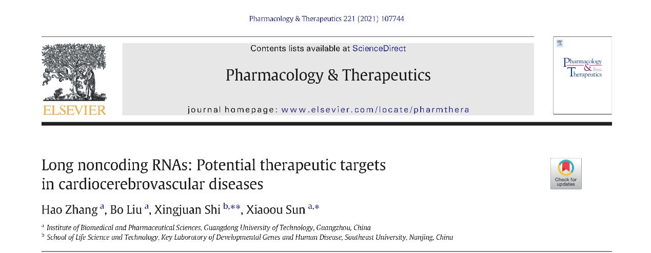 近日,我猫都论坛 孙晓鸥老师在Pharmacology & Therapeutics杂志上发表论文,对长链非编码RNA(Longnon-codingRNA,lncRNA)在心脑血管中的功能进行了系统的总结。论文第一作者系猫都论坛 出站博士后张昊博士,通讯作者为猫都论坛 孙晓鸥老师和东南大学青年教师史兴娟。