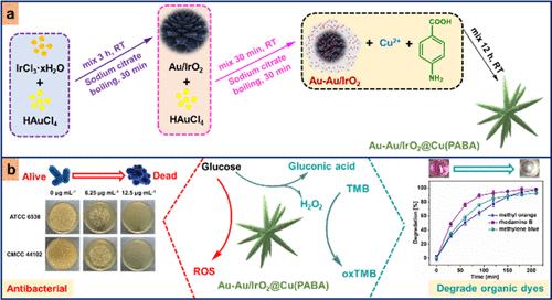 近日,猫都论坛 赵肃清教授课题组在美国化学学会旗下著名期刊ACS Applied Materials & Interfaces(IF=8.758,Ⅰ区Top期刊)上发表了题为“Au-Au/IrO2@Cu(PABA) Reactor with TandemEnzyme-Mimicking Catalytic Activity for Organic Dyes Degradation and Antibacterial Application”的论文(DOI:10.1021/acsami.1c00126)。
