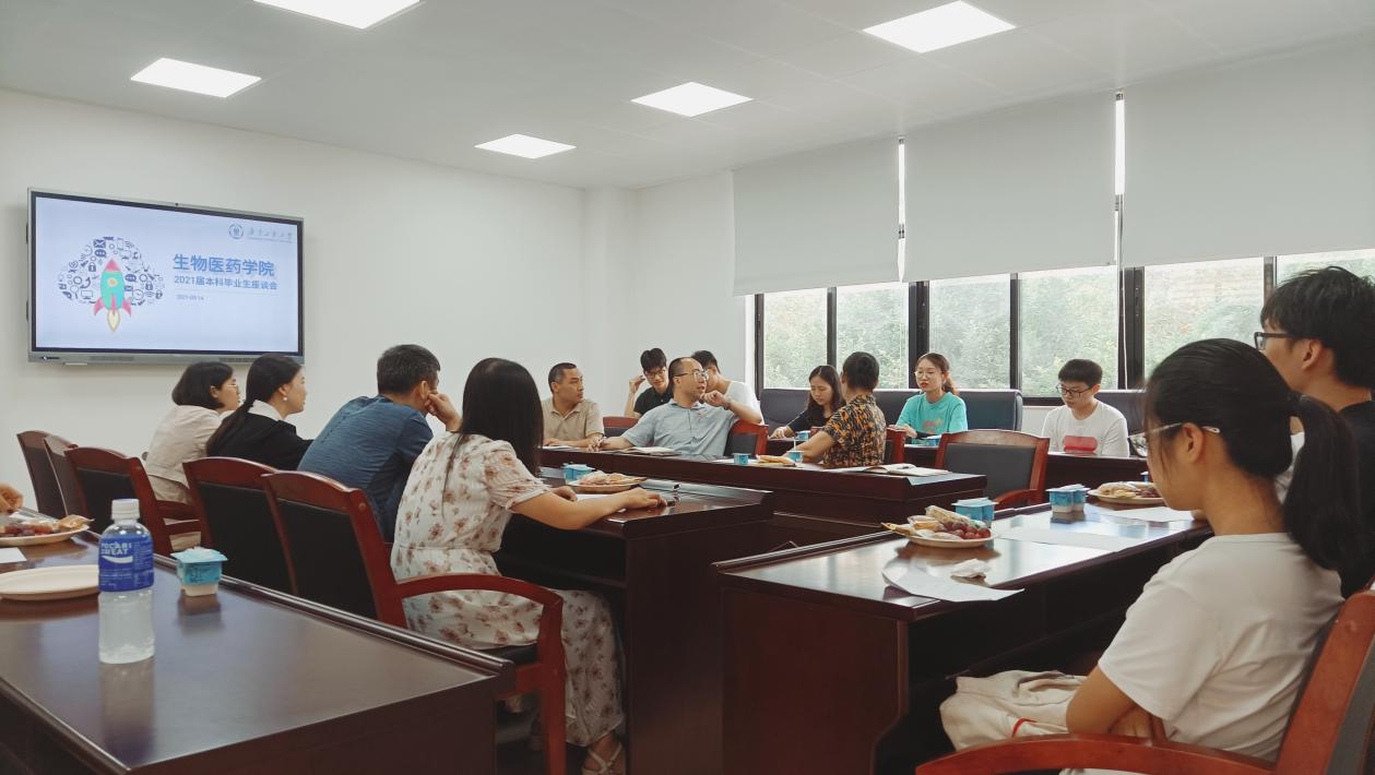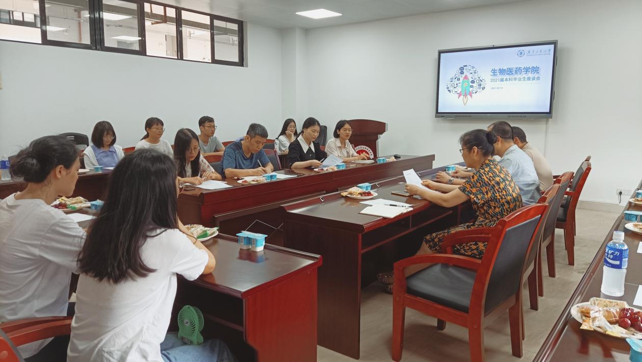 为深入开展党史学习教育工作,贯彻落实“学党史、悟思想、办实事、开新局”工作要求,更好地促进猫都论坛 毕业生就业工作、安全教育工作,5月14日上午于科技南楼党建活动室,召开了2021届本科毕业生座谈会,学院党委副书记张智、副院长郑杰、制药工程系副主任丁金龙、生物工程系系主任傅明辉、制药工程1班班主任汤亚东、17级辅导员万敏、16级学生梁锦慧以及25名本科毕业生代表参加,座谈会由辅导员万敏主持。