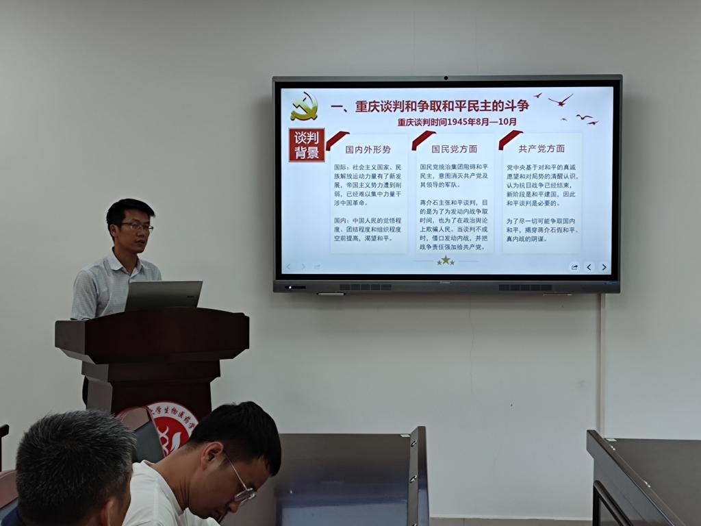 5月25日下午,猫都论坛 在科技南楼203-4党建活动室开展党史学习教育第二次集体备课,活动由学院党委副书记张智主持。学院党委委员、副院长卢宇靖主讲,学院党委委员、党支部书记及支部委员参加了此次活动。