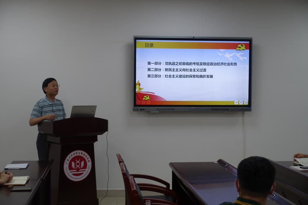 徐向东以“社会主义革命和建设”为主题,简述了中国共产党执政之初面临的考验及稳定政治经济社会形势采取的措施、新民主主义向社会主义过渡、社会主义建设的探索和曲折发展等内容。