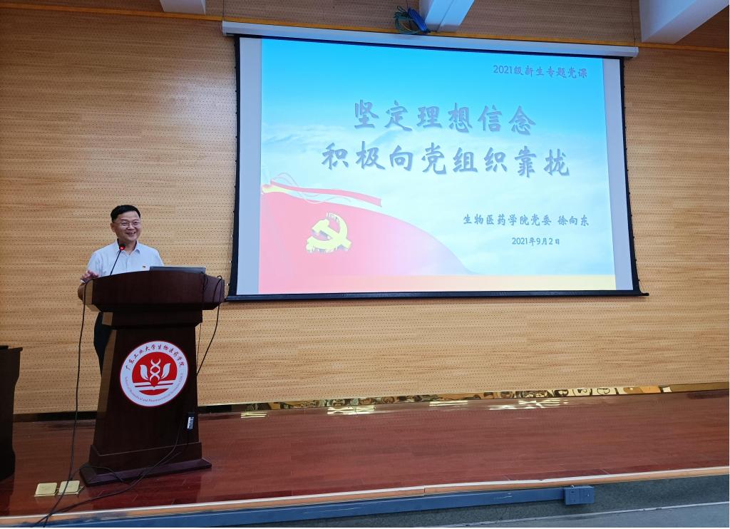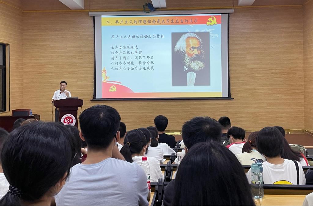 徐向东引导新生思考:中国共产党为什么“能”,马克思主义为什么“行”,中国特色社会主义为什么“好”,从树立理想信念的重要性、中国共产党的领导地位是历史和人民的选择、新中国成立以来的巨大成就等方面,简要回顾了中国共产党100年的奋斗历程,简述了党中央“两个一百年”奋斗目标的战略部署、第一个百年奋斗目标实现后更为宏伟的新征程。徐向东希望同学们要认真学习和领会习近平总书记在庆祝中国共产党成立100周年大会上的重要讲话精神,树立远大理想、积极学习党的理论知识,尽早递交入党申请书,以实际行动向党组织靠拢。